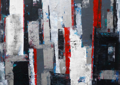 I suoi dipinti sono realizzati nei canoni dell’astrazione, in esiti di trascinante, ardita azione informel. Irruenti soggetti transfer del proprio ambito vissuto, pensato, auspicato, ricordato tra libero sfogo del proprio Io e delle più celate sfere inconsce. L’energia dell’imprinting sottende una profondità mirata di soluzioni estetiche, un mosaico caleidoscopico di tratto-colore: dove vanno in scena le rivisitazioni oniriche ed allegoriche del vivere. Giannina Scorza